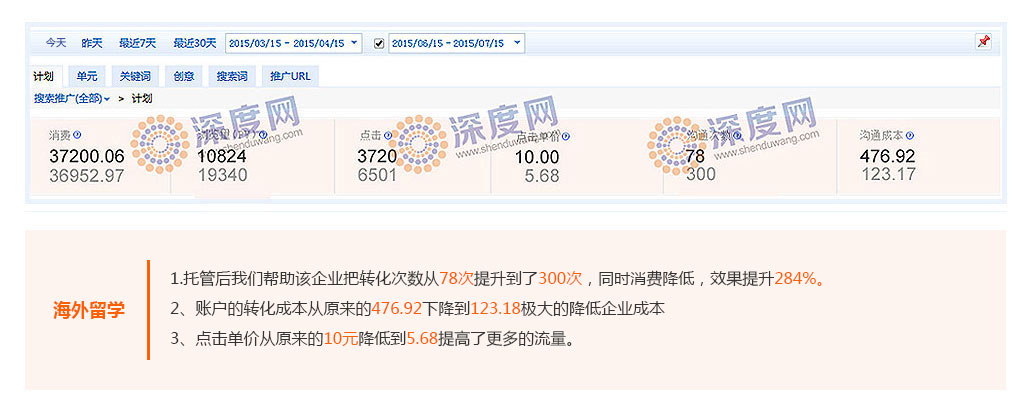 深度網(wǎng)營(yíng)銷已經(jīng)幫助大量企業(yè)在百度競(jìng)價(jià)廣告投入不變的情況下把咨詢總量(訂單總量)在原有基礎(chǔ)上提升數(shù)倍。