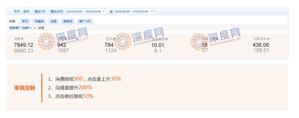 任何一個(gè)百度競(jìng)價(jià)成本高效果差的帳戶都至少存在10%-20%的廣告費(fèi)浪費(fèi),深度網(wǎng)營(yíng)銷每天都會(huì)幫助合作企業(yè)的一件事情就是找到浪費(fèi)的廣告投入并及時(shí)加以控制(咨詢企業(yè)QQ1224392661免費(fèi)申請(qǐng)?jiān)\斷,看看是否存在廣告浪費(fèi))。